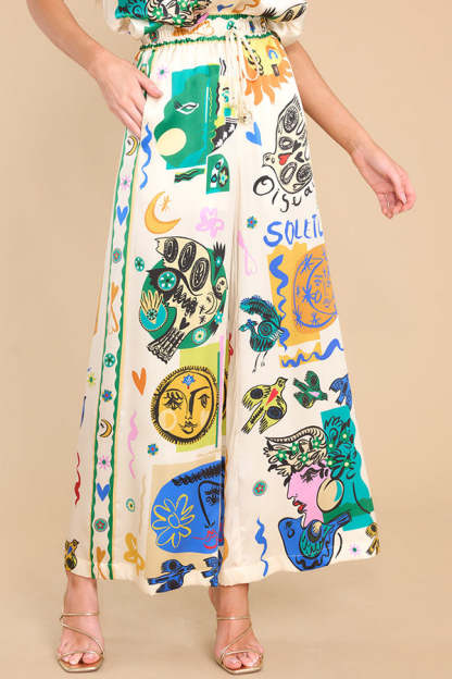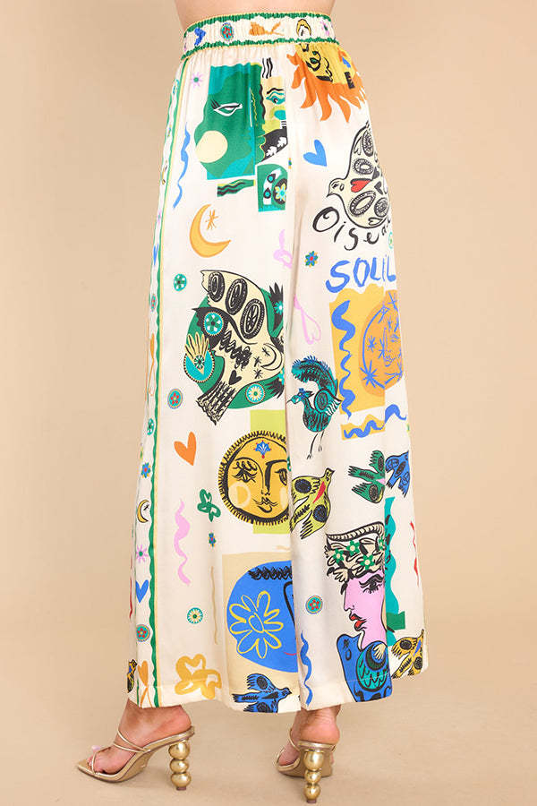 Meralda Unique Print Elastic Waist Pocketed Wide Leg Pants